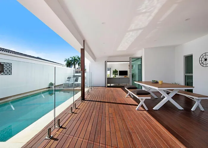 別荘はゴールドコースト地方植物園などの自然の名所から4.1kmの距離の場所にあります。 この宿泊施設はゴールドコーストから車で10分以内で、レイクランズ ゴルフ クラブなどのエンターテイメント施設から自動車で15分の場所にあります。